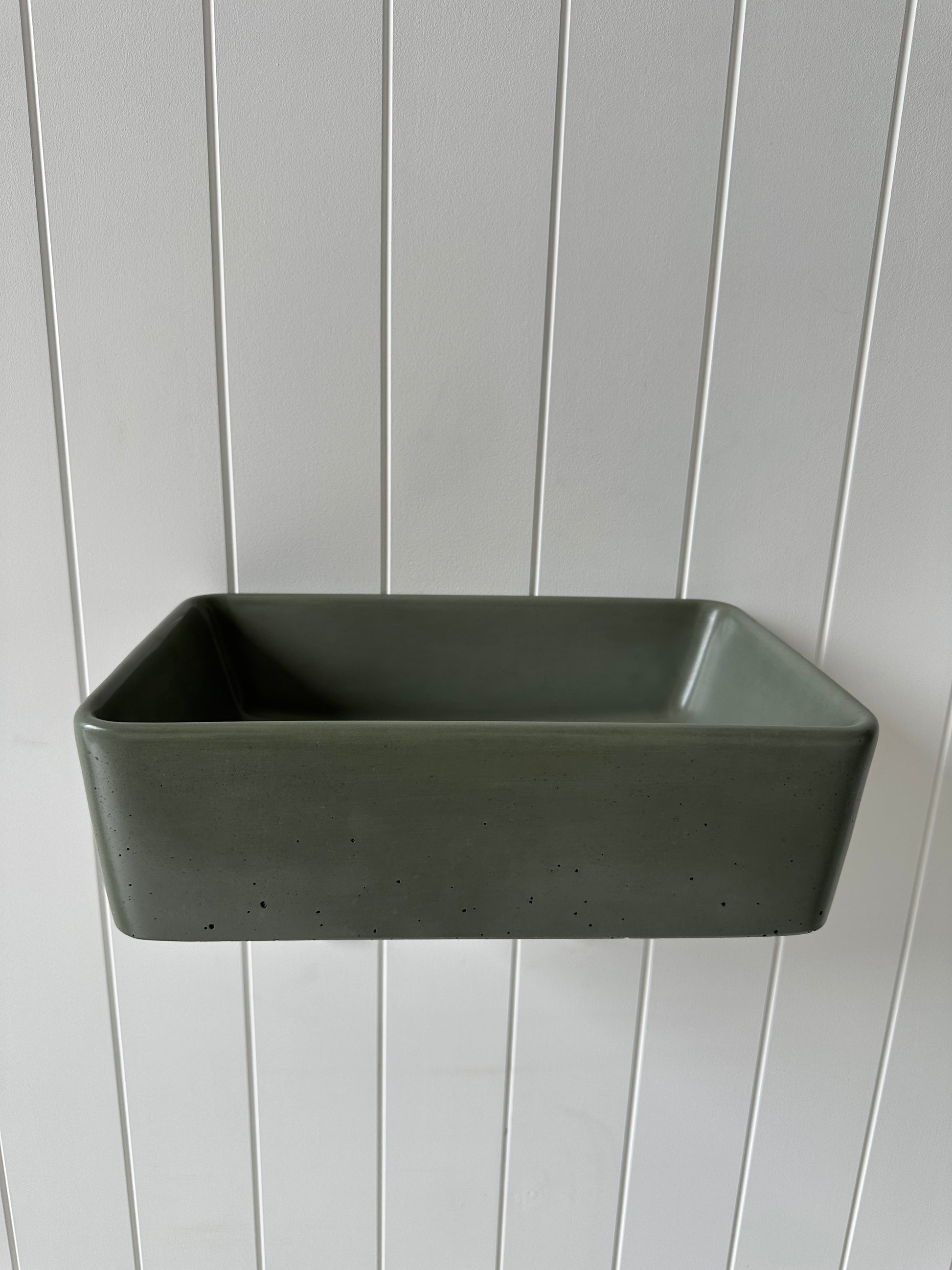 Mini Rectangle Concrete Vessel Basin in Moss
